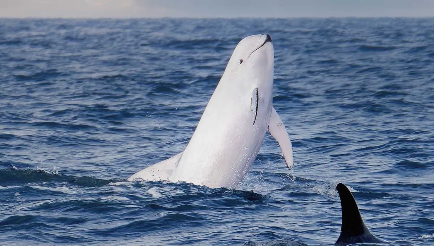Ένα αγαπημένο κόλπο που εφαρμόζει το κινέζικο λευκό δελφίνι για να πιάσει ψάρια, είναι να συγκεντρώνεται πίσω από τα αλιευτικά σκάφη και να μαζεύει τα ψάρια που πέφτουν από το πίσω μέρος – είναι πολύ πιο εύκολο από το να βγει και να πιάσει το ίδιο ψάρια.