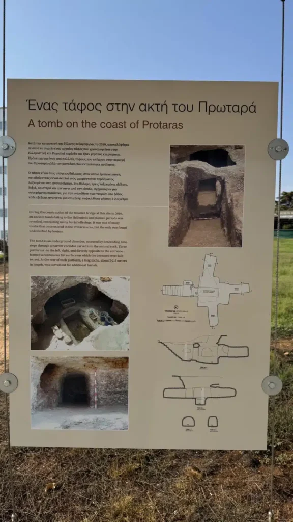 Ενημερωτικές πινακίδες στον τάφο Ελληνιστικής – Ρωμαϊκής περιόδου στον πεζόδρομο του Πρωταρά, κοντά στην παραλία Fig Tree Bay – επονομαζόμενο ως «Τάφος Βασίλισσας»- τοποθέτησε πρόσφατα το Τμήμα Αρχαιοτήτων.
