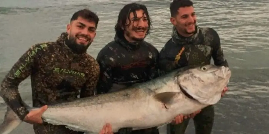 Ένα ψάρι γίγαντα και περίπου στο ύψος και το βάρος των νεαρών, οι οποίοι πόζαραν με τη λεία τους, κατάφεραν να πιάσουν με μαεστρία, παρά την περιπέτεια που έζησαν για να το ανελκύσουν στο σκάφος τους. Οι φωτογραφίες μιλούν από μόνες τους.