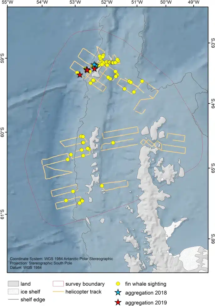 Η Helena Herr και οι συνεργάτες της από το Πανεπιστήμιο του Αμβούργου κατέγραψαν 100 ομάδες πτεροφάλαινας με μεγέθη που κυμαίνονταν από ένα έως τέσσερα άτομα, καθώς και οκτώ ασυνήθιστα μεγάλες ομάδες έως και 150 φαλαινών που φαίνεται να τρέφονται ενεργά, καταρρίπτοντας τα προηγούμενα μέγιστα που αριθμούσαν μόλις 13 άτομα.
