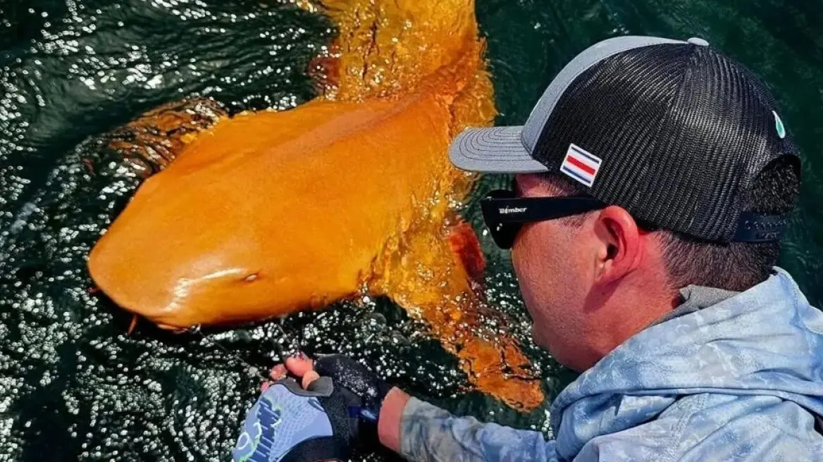 Ένας σπάνιος πορτοκαλί καρχαρίας, ο μοναδικός του είδους του που έχει εντοπιστεί μέχρι σήμερα, βρέθηκε κατά τη διάρκεια αλιευτικού ταξιδιού στην περιοχή του Εθνικού Πάρκου Tortuguero στην Κόστα Ρίκα, προκαλώντας ενθουσιασμό στους ερευνητές.