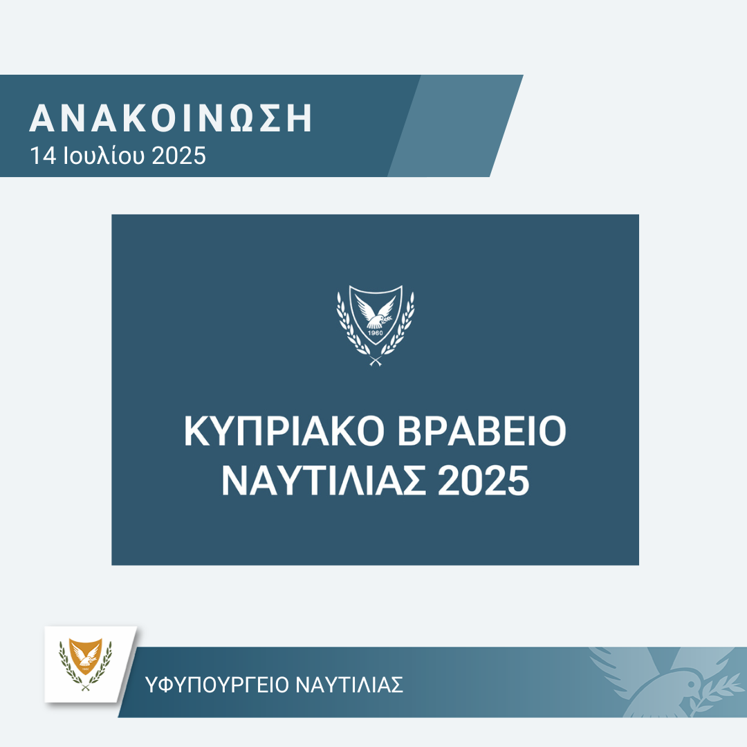 Για την επιλογή των κατάλληλων προσώπων για το «Κυπριακό Βραβείο Ναυτιλίας 2025» συστάθηκε από την Υφυπουργό Ναυτιλίας παρά τω Προέδρω, Επιτροπή Επιλογής που απαρτίζεται από τους ακόλουθους: