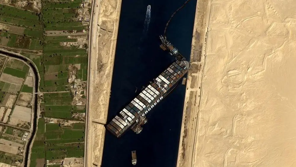 Το μήκος 400 μέτρων Ever Given προσάραξε διαγώνια στο νότιο τμήμα της Διώρυγας, λόγω ισχυρών ανέμων, στις 23 Μαρτίου και παρέμεινε κολλημένο για έξι ημέρες, διακόπτοντας τη διέλευση, με αποτέλεσμα να δημιουργηθεί ουρά εκατοντάδων πλοίων και στις δύο πλευρές της γέφυρας που περίμεναν να τη διασχίσουν, επηρεάζοντας σημαντικά τις παγκόσμιες εφοδιαστικές αλυσίδες.