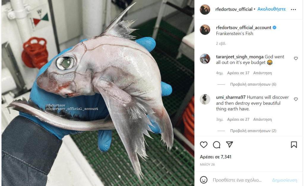 Η ανάρτηση του Ρόμαν συγκέντρωσε χιλιάδες likes και το περίεργο ψάρι έγινε viral. Οι χρήστες του Instagram γοητεύτηκαν από το «ψάρι Φρανκεστάιν» με τα συγχαρητήρια να διαδέχονται τις εκδηλώσεις θαυμασμού.