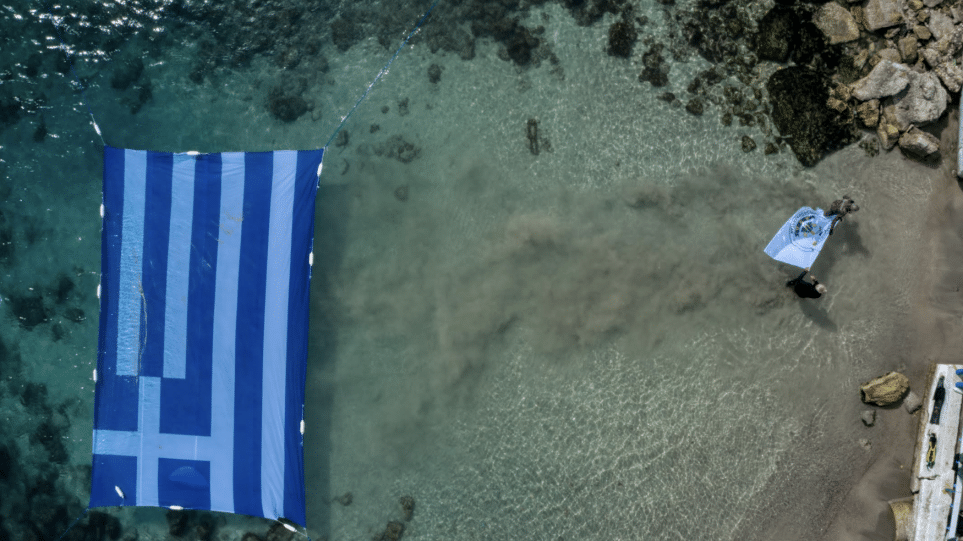 Ο δήμος Πειραιά ανέλαβε την τοποθέτηση ελληνικής σημαίας στην επιφάνεια της θάλασσας.