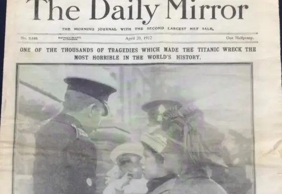 Με ημερομηνία 20 Απριλίου 1912, το πρωτοσέλιδο της βρετανικής εφημερίδας The Daily Mirror δείχνει δύο γυναίκες στο Σαουθάμπτον, την αγγλική πόλη-λιμάνι από όπου απέπλευσε ο Τιτανικός, να περιμένουν να αποσταλεί ο κατάλογος των επιζώντων.