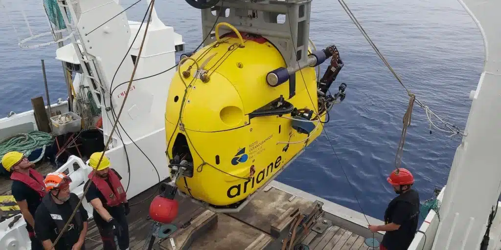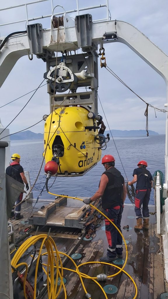 Πολύτιμος βοηθός στην έρευνά τους είναι το ρομποτικό όχημα Ariane, το οποίο έχει τη δυνατότητα να καταδυθεί σε βάθος μέχρι 2.500 μέτρα και να παραμείνει εκεί έως και έξι ώρες σε κάθε κατάδυση. Οι 4Κ κάμερες που διαθέτει καταγράφουν τη μορφολογία του υποθαλάσσιου πυθμένα και επιτρέπουν στους ερευνητές να δουν και να μελετήσουν το ανάγλυφο με μέγιστη ταχύτητα τα 0,5 μέτρα ανά δευτερόλεπτο. Εξοπλισμένο με δύο μηχανικούς βραχίονες, είναι επίσης σε θέση να συλλέξει ιζήματα σε σωλήνες μήκους 30 εκατοστών που ονομάζονται πυρήνες. Οι οκτώ πυρήνες με ιζήματα που συλλέχθηκαν θα βοηθήσουν στη χρονολόγηση του υποθαλάσσιου αναγλύφου.