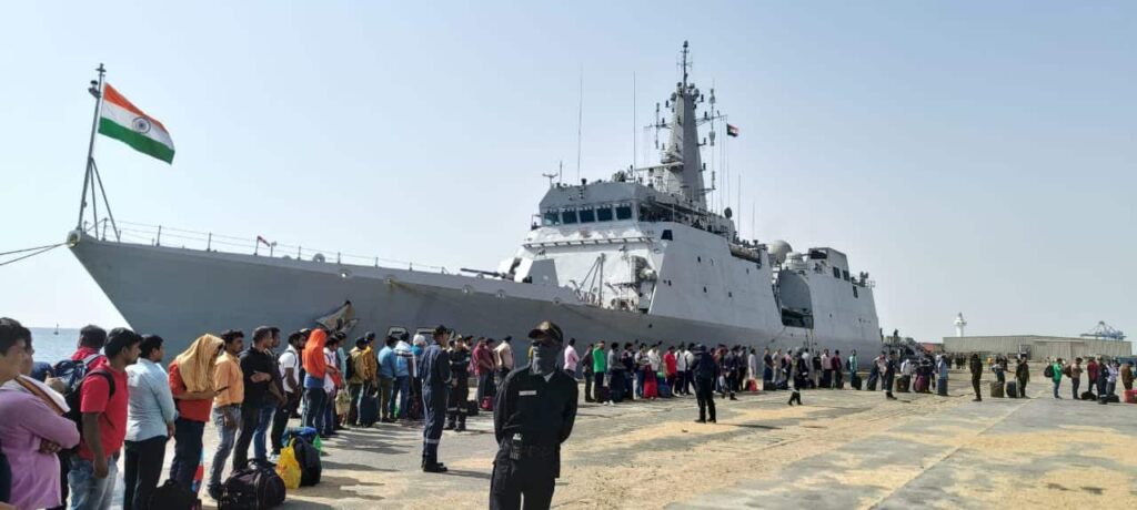 Το Ινδικό Ναυτικό έχει αναπτύξει δύο πολεμικά πλοία, τα INS Sumedra και INS Teg, για να μεταφέρουν τους πολίτες του μέσω της Ερυθράς Θάλασσας από το Πορτ Σουδάν στη Τζέντα. Το πρώτο ταξίδι ξεκίνησε με 278 Ινδούς υπηκόους στο Sumedra την Τρίτη. Από την Τζέντα, οι εκτοπισμένοι θα μεταφερθούν και μετά για επαναπατρισμό.