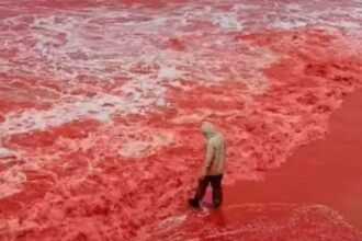 Mια κατακόκκινη παραλία γίνεται πόλος έλξης στο νησί Ορμούζ