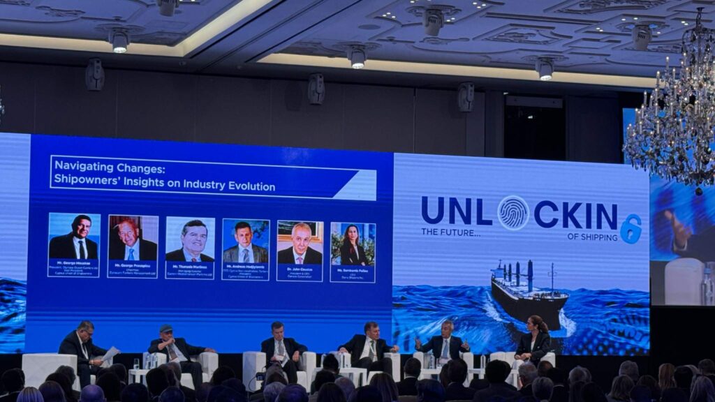 Στο επίκεντρο του πάνελ πλοιοκτητών στο Maritime Cyprus 2025, το οποίο συντόνισε ο Αντιπρόεδρος της Κυπριακής Ένωσης Πλοιοκτητών Γιώργος Μούσκας, βρέθηκε η επικείμενη ψήφιση του IMO Net-Zero Framework, με τον CEO της Cyprus Sea Lines/Hellenic Tankers και Πρόεδρο της Κυπριακής Ένωσης Πλοιοκτητών, Ανδρέα Χατζηγιάννη να διατυπώνει την εκτίμηση ότι, το εν λόγω ψήφισμα θα στεφθεί «δυστυχώς» από επιτυχία.