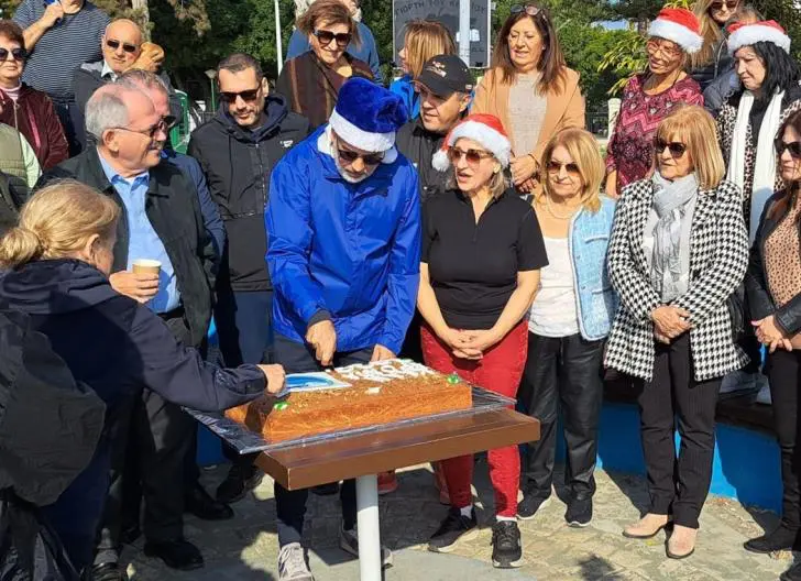 Η θαλασσοταραχή χάλασε τα σχέδια κάποιων από τους κολυμβητές που αποφάσισαν να μην κολυμπήσουν. Δεν επηρέασε καθόλου όμως το κέφι τους έτσι πιστοί στο ραντεβού τους συναντήθηκαν και φέτος το πρωί για να γιορτάσουν την Πρωτοχρονιά. Στις δέκα το πρωί, στην παρουσία του Υφυπουργού Ναυτιλίας Βασίλη Δημητριάδη έκοψαν τη βασιλόπιττα.