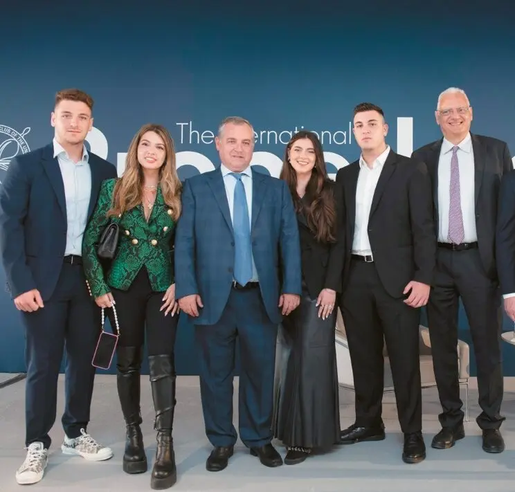 Στη φωτογραφία ο Κύπριος εφοπλιστής Πόλυς Χατζηωάννου με τα παιδιά του Βασίλη, Στάλω, Μαρίνα και Ανδρέα (από αριστερά) και τον πρόεδρο της Safe Bulkers Λουκά Μπαρμπαρή (δεξιά)