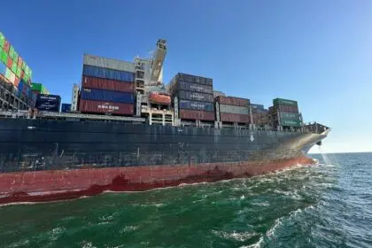 Ένα από τα εμπορικά πλοία που βρίσκονταν εγκλωβισμένα στο βομβαρδισμένο λιμάνι της…