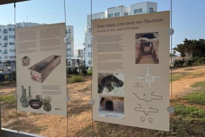 Ένας βασιλικός τάφος στην ακτή του Πρωταρά. Σχετικές πινακίδες στο Fig Tree Bay